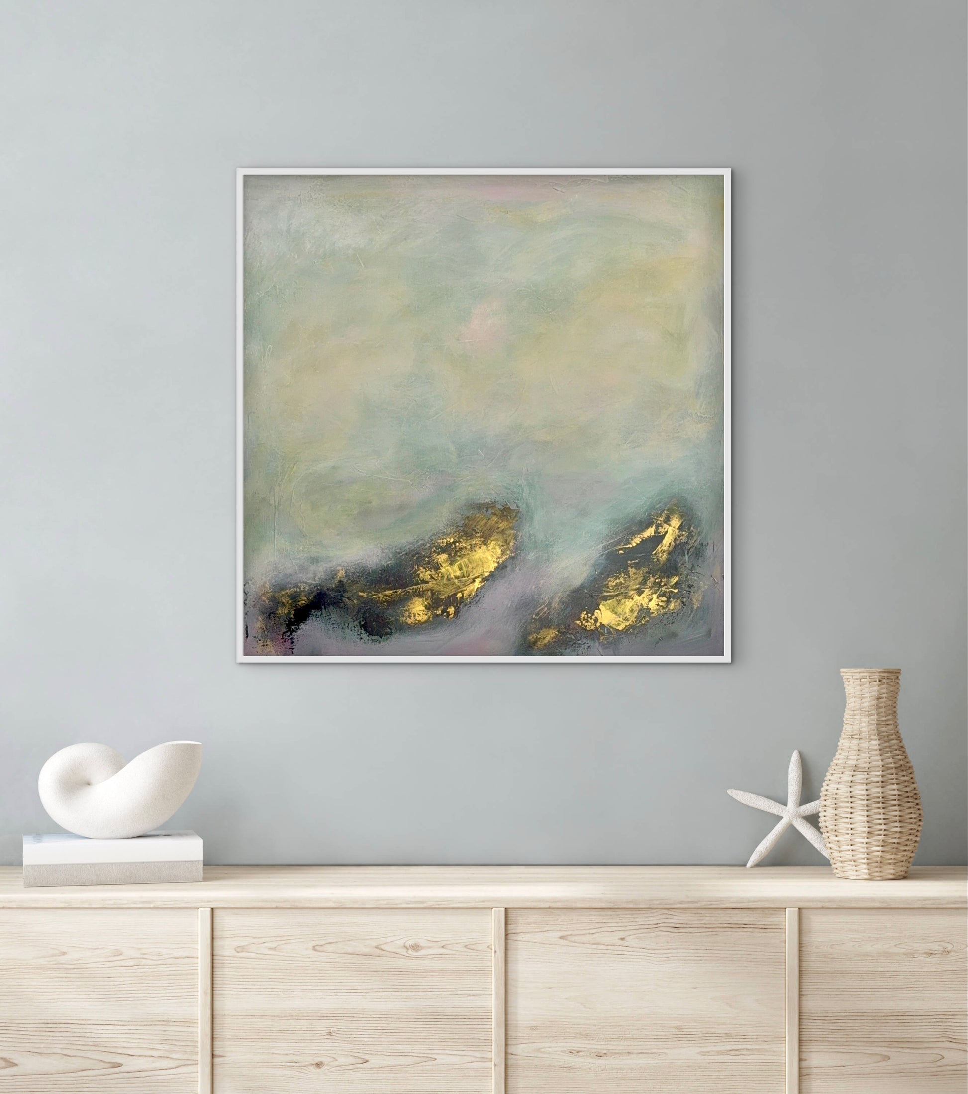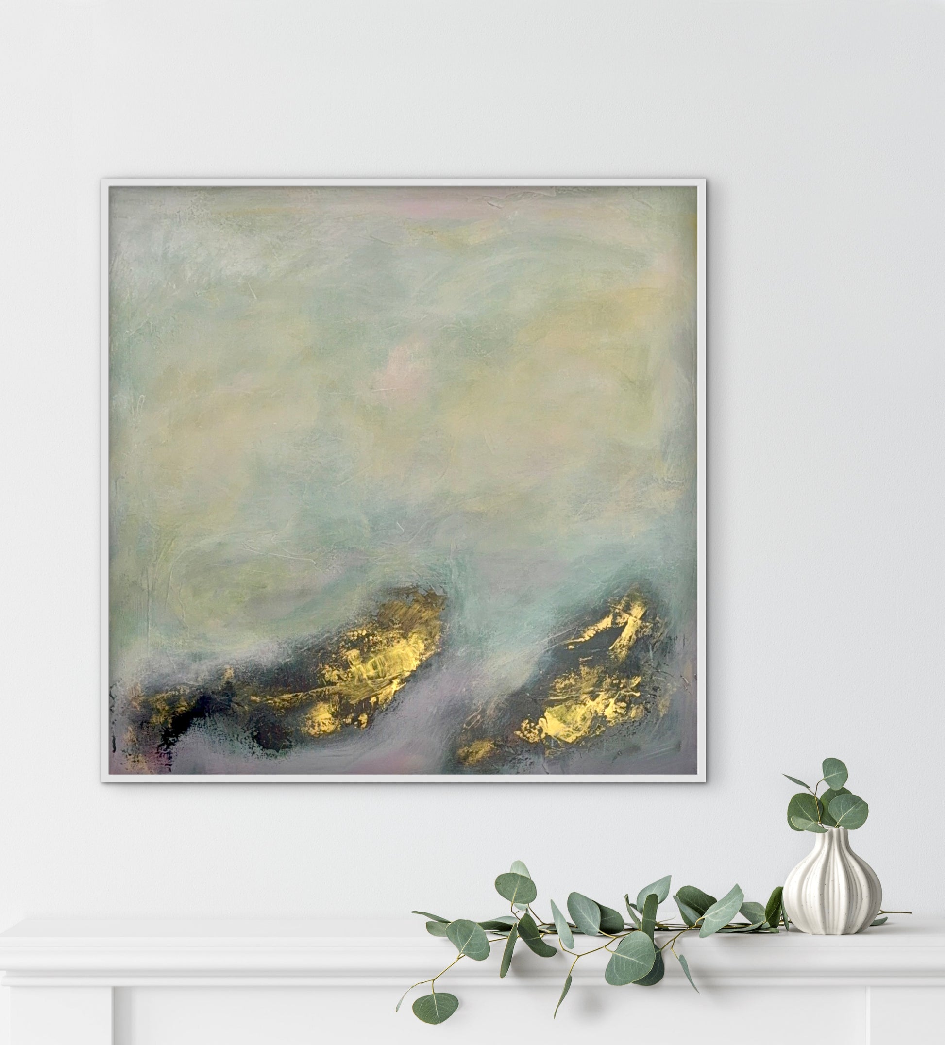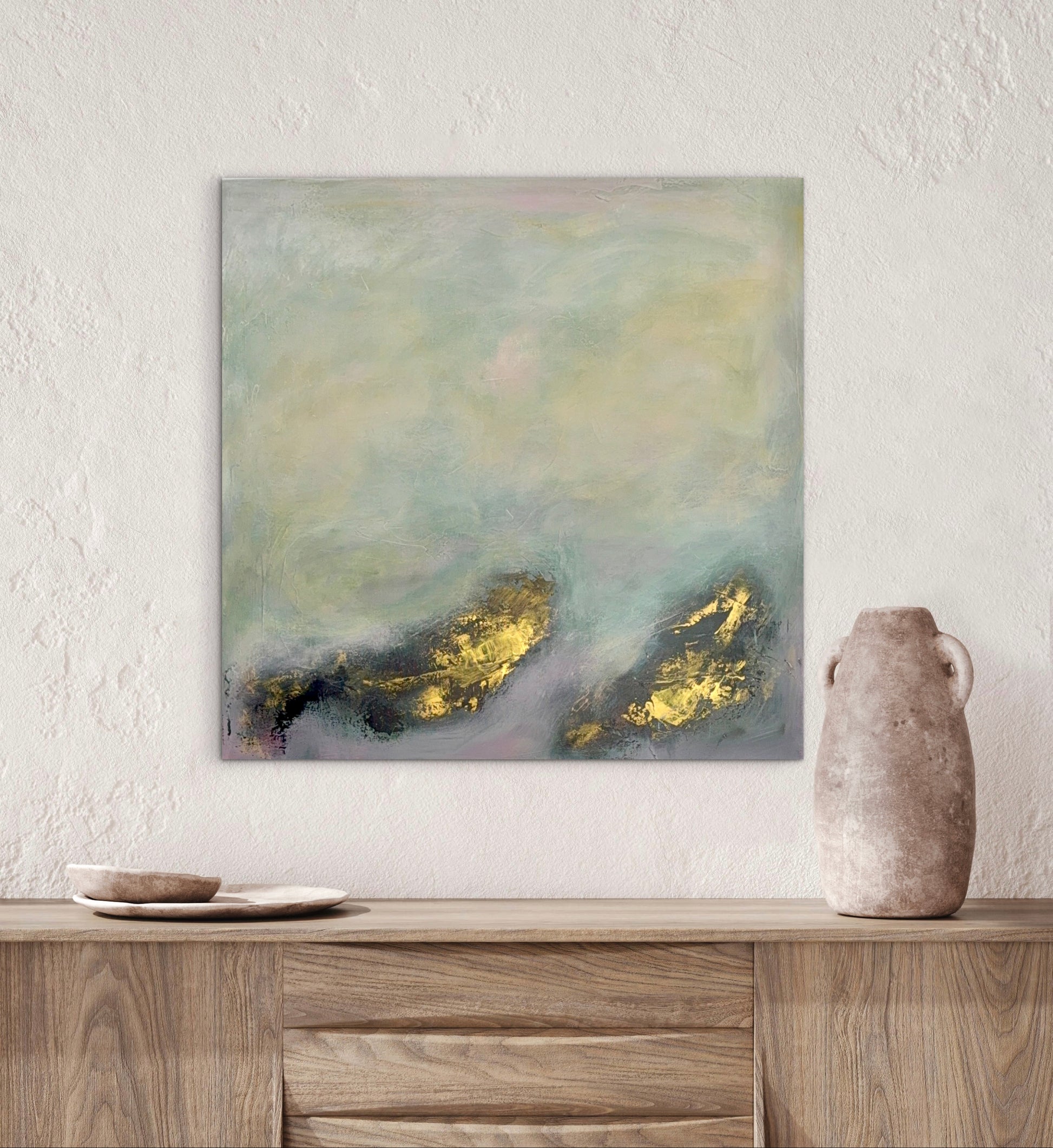 Acrylic on stretched canvas with textured medium.